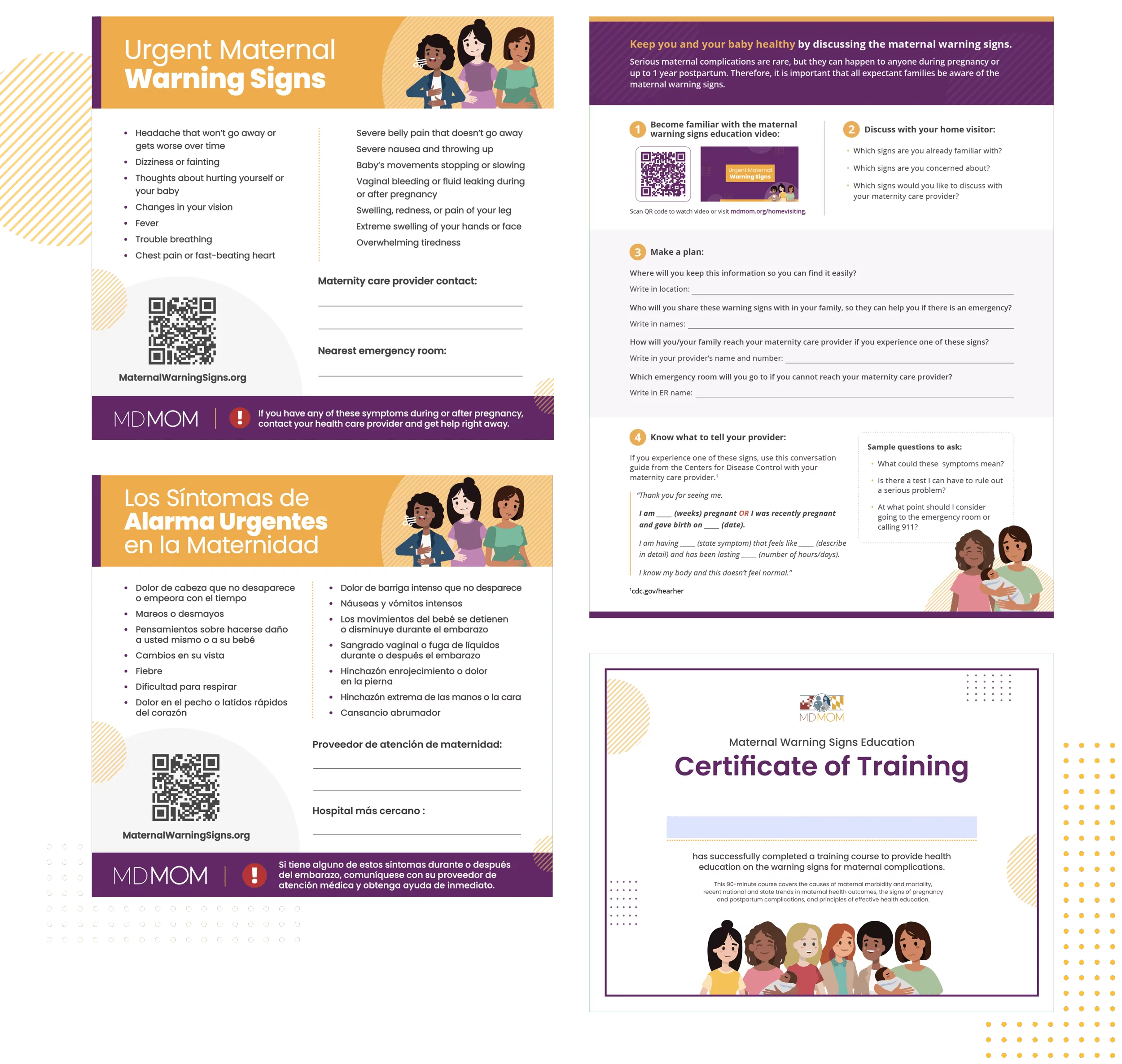 In addition to the training courses, videos, website, and ads, Hatcher has produced several handouts and promotional pieces, including magnets for patients, providers, and home health professionals. These simple but effective measures work in concert to improve maternal health care, educate expecting mothers about critical warning signs, guide providers in bias-free practices, and create meaningful experiences for all stakeholders.