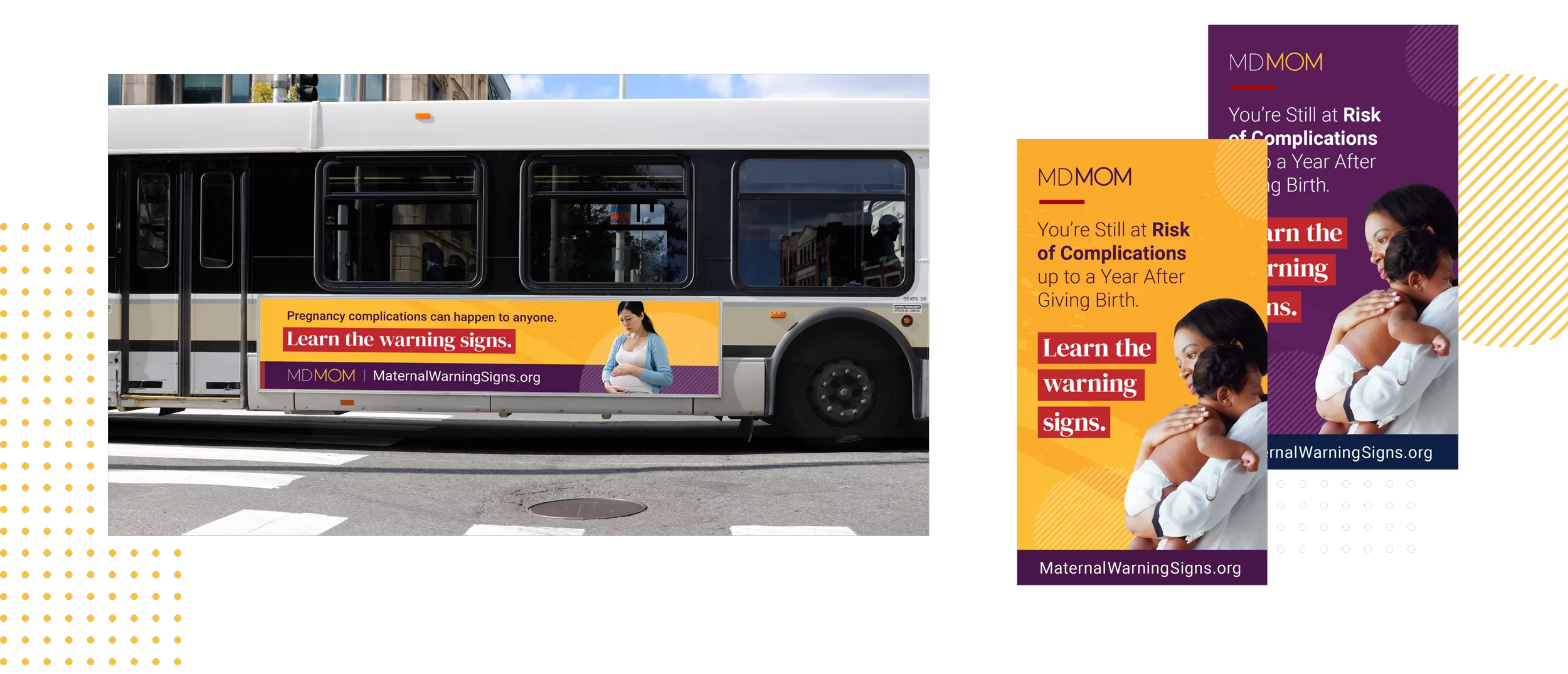 Hatcher also designed and placed transit ads on buses in Baltimore and Maryland’s Prince George’s County to promote maternal warning sign information to a diverse mix of communities. To complement the entire mix of campaign elements, including the out-of-home campaign, Hatcher is now implementing a six-month digital ad campaign statewide to drive visitors to the MDMOM landing page.